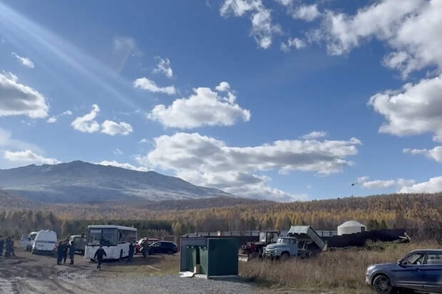 Рядом с урочищем Буратинка был найден оставленный семьей автомобиль. К месту съехались волонтеры и сотрудники правоохранительных органов, на одном из снимков заметен вертолет.
