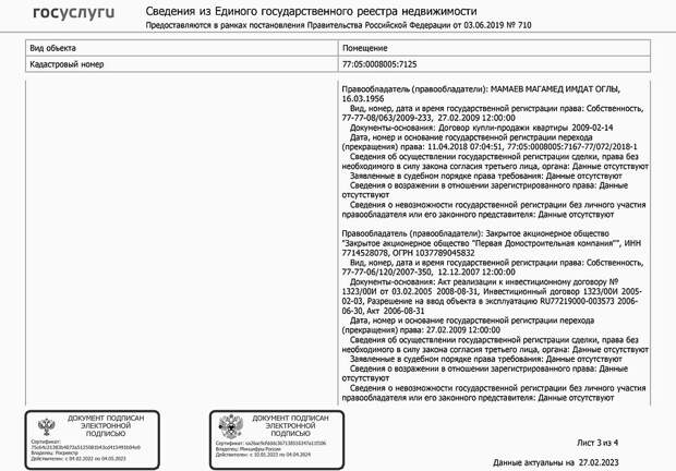 Вот так выглядит выписка из ЕГРН, полученная правообладателем онлайн: