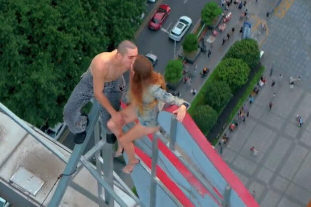 В размещенном ролике блогеры запечатлены на крыше высотного здания. Биркус предстал перед камерой в синих джинсах и черных ботинках.