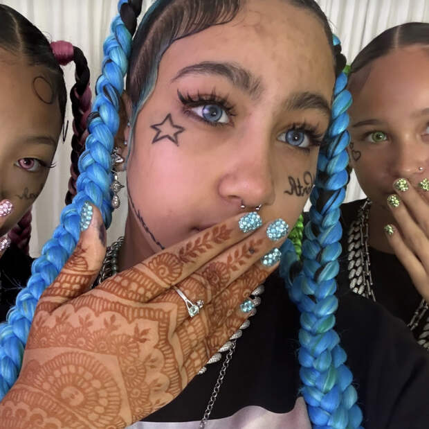 Кроме того, она позировала с голубыми косами, а также изображением звезд и надписью на лице. Вдобавок в ее носу присутствовал пирсинг.Читатели портала подвергли критике образ девочки в комментариях под материалом. «Яблоко от яблони недалеко падает», «Поистине трагично. Этим детям нужны духовные и моральные ценности и воспитание», «Она еще и осветлила кожу на фотографиях. Меня это гораздо больше беспокоит», «Разве это не прелесть? Отличная работа, Ким», «Что можно ожидать от детей, воспитанных Ким и Канье? Нормальности?» — высказывались они.