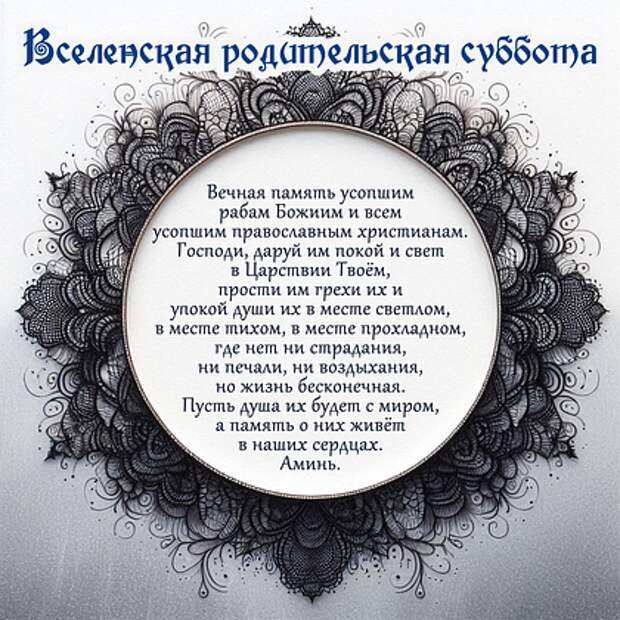 Пусть мир и благодать этого особого субботнего дня коснутся вашего сердца. Пусть слезы светлой памяти омоют душу, делая ее чище и добрее. А ощущение, что наши усопшие — не где-то далеко, а рядом, в незримом мире, и принимают нашу молитву, станет для вас настоящим утешением. Доверьте Господу в молитве всех, кто дорог вашему сердцу, и почувствуйте, как грусть постепенно наполняется тихим светом надежды на радость будущей встречи.