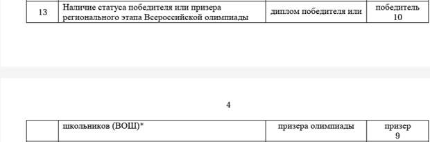 Дополнительные баллы за индивидуальные достижения